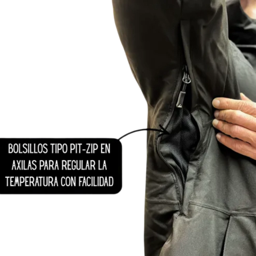 Gracias a su impermeabilidad de 15.000 mm, costuras termo selladas y capucha ajustable, esta campera se adapta a condiciones climáticas exigentes, protegiéndote del viento, la nieve y el frío. Además, cuenta con múltiples bolsillos estratégicos y ventilaciones que la hacen práctica y cómoda para el uso intensivo en la montaña.
