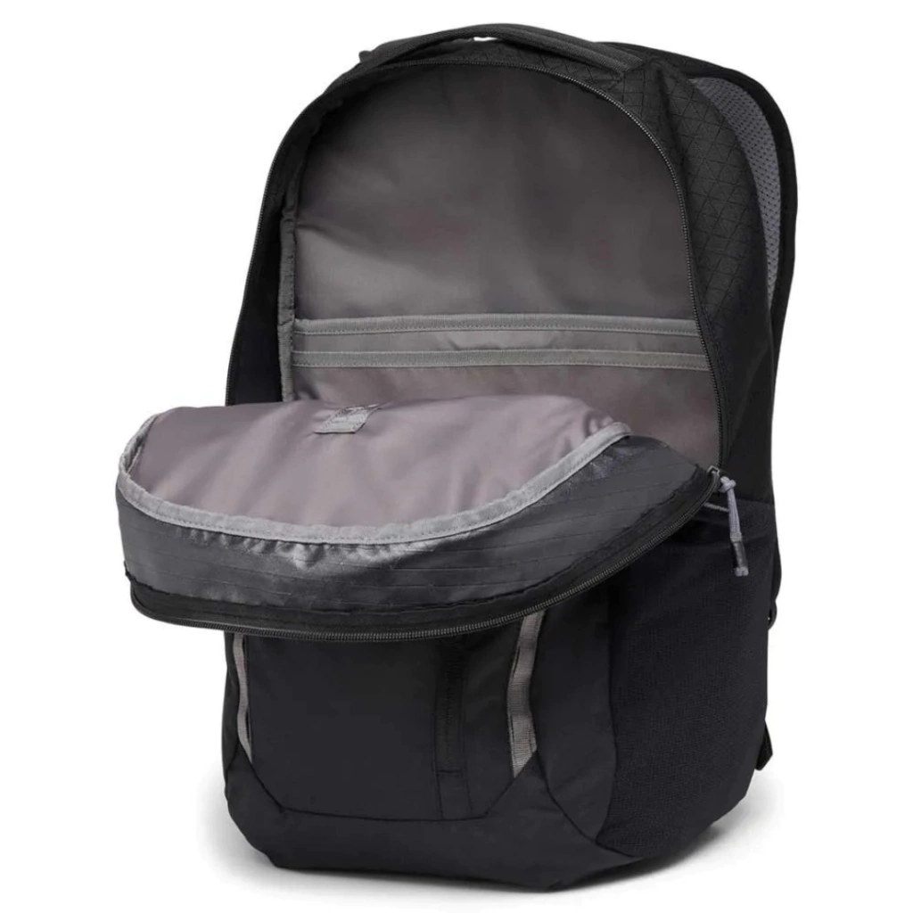 Características: correas versatiles personalizables, twin slottm funda acolchada con forro polar para laptop de hasta 15, funda separada para tablet, bolsillo organizador frontal, dos compartimientos principales, dos bolsillos para botellas de agua, tiradores de cierres reflectantes, bolsillo externo con cierre, correa de esternon ajustable, tirantes acolchados contorneados, clip para llave, panel inferior acolchado, asa superior acolchada.